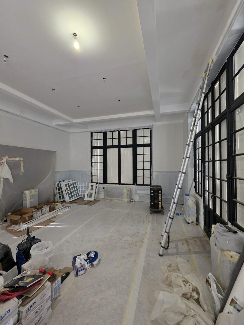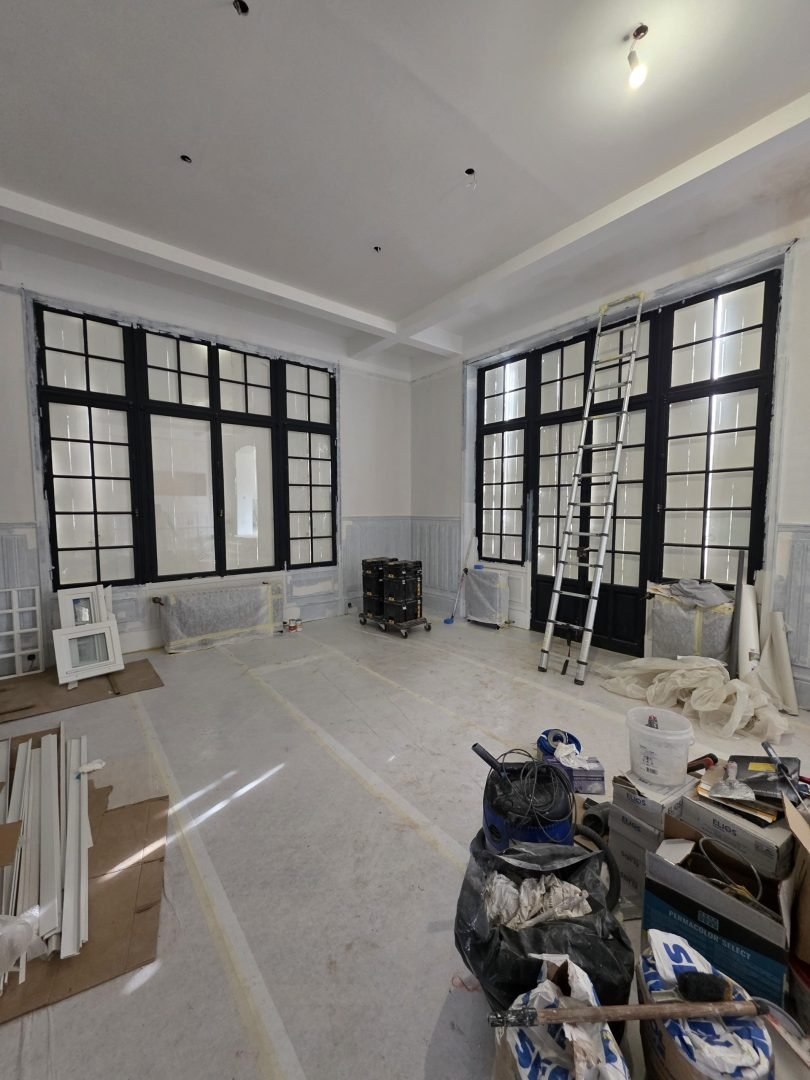 Ce chantier d’envergure a nécessité une prise en charge globale, intégrant à la fois des travaux de restructuration, des reprises techniques lourdes et des finitions soignées, dans le respect du caractère architectural du bâti.